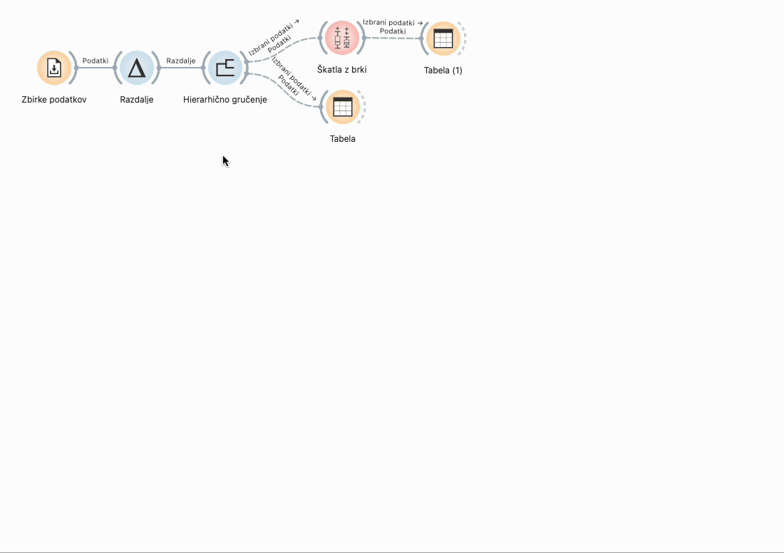 Če želimo do odgovora priti (še) z računalnikom, ponovno odpremo Hierarhično gručenje.