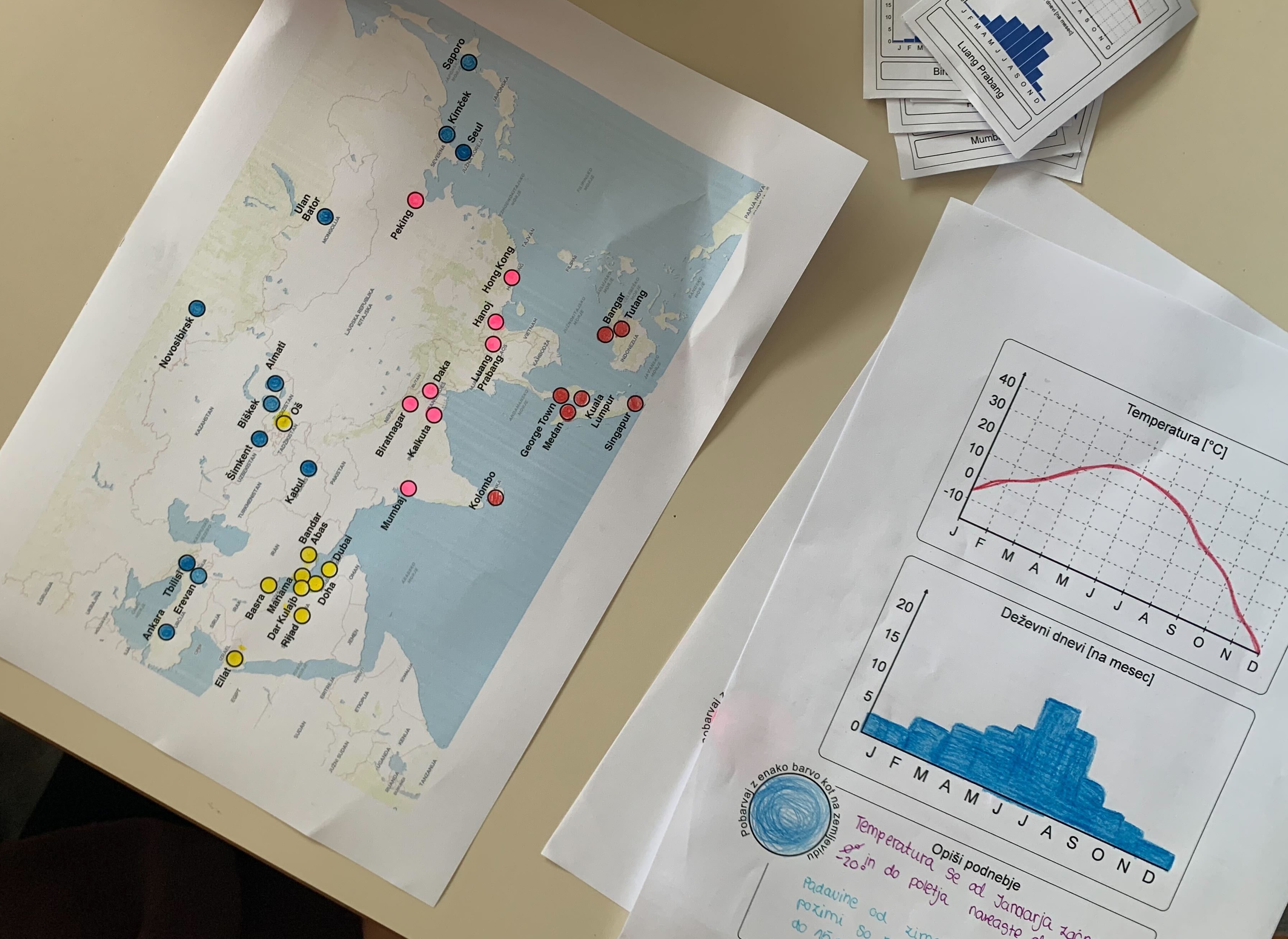 Tu je čas za geografijo na nivoju, primernem razredu, v katerem izvajamo to dejavnost. V sedmem razredu bo aktivnost uvod ali ponovitev podnebnih pasov Azije, v četrtem razredu pa bo morda treba podnebja najprej predstaviti.