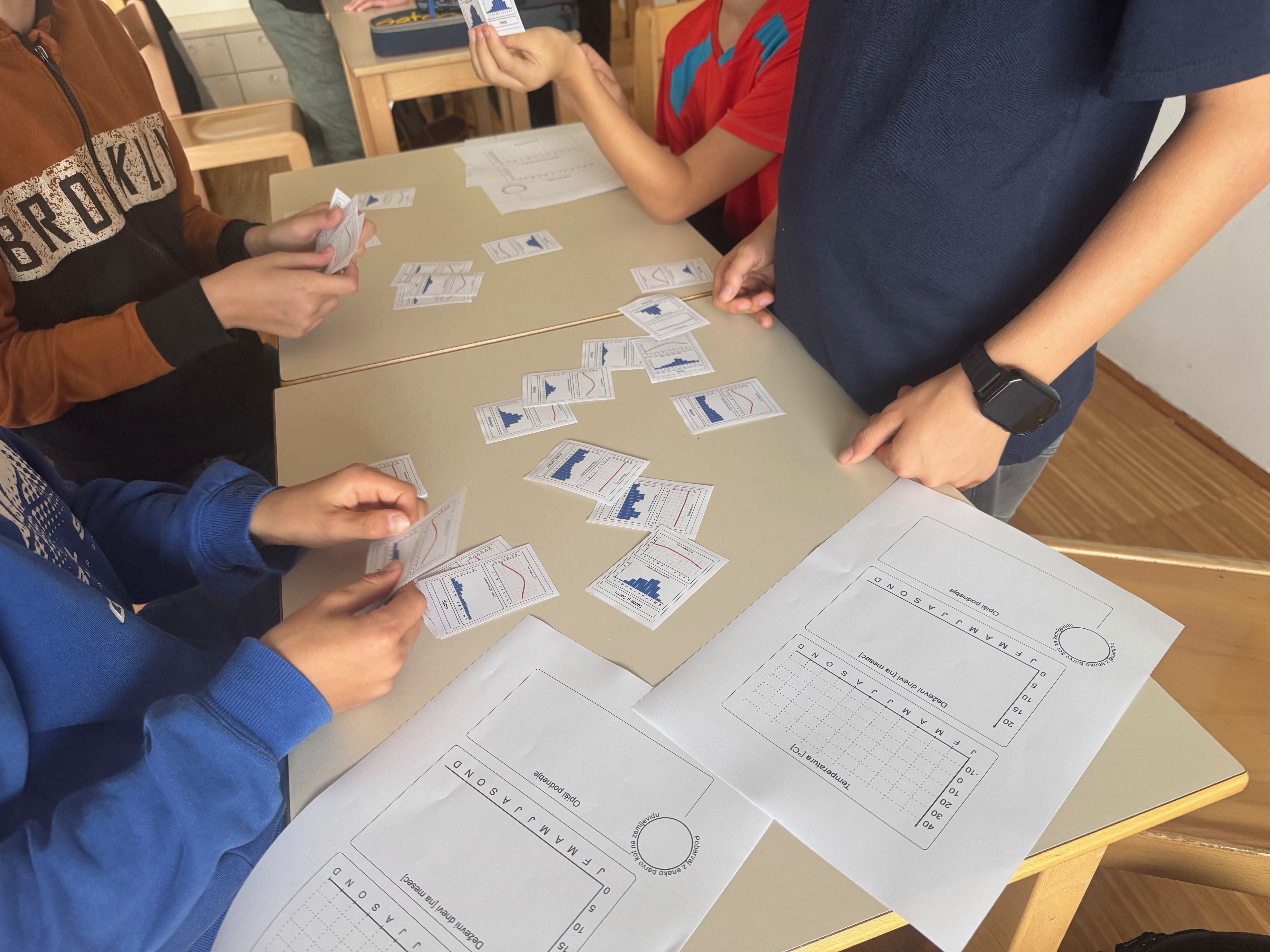 Učence razdelimo v skupine po 3-4. Vsaki skupini damo komplet kartic s klimogrami.