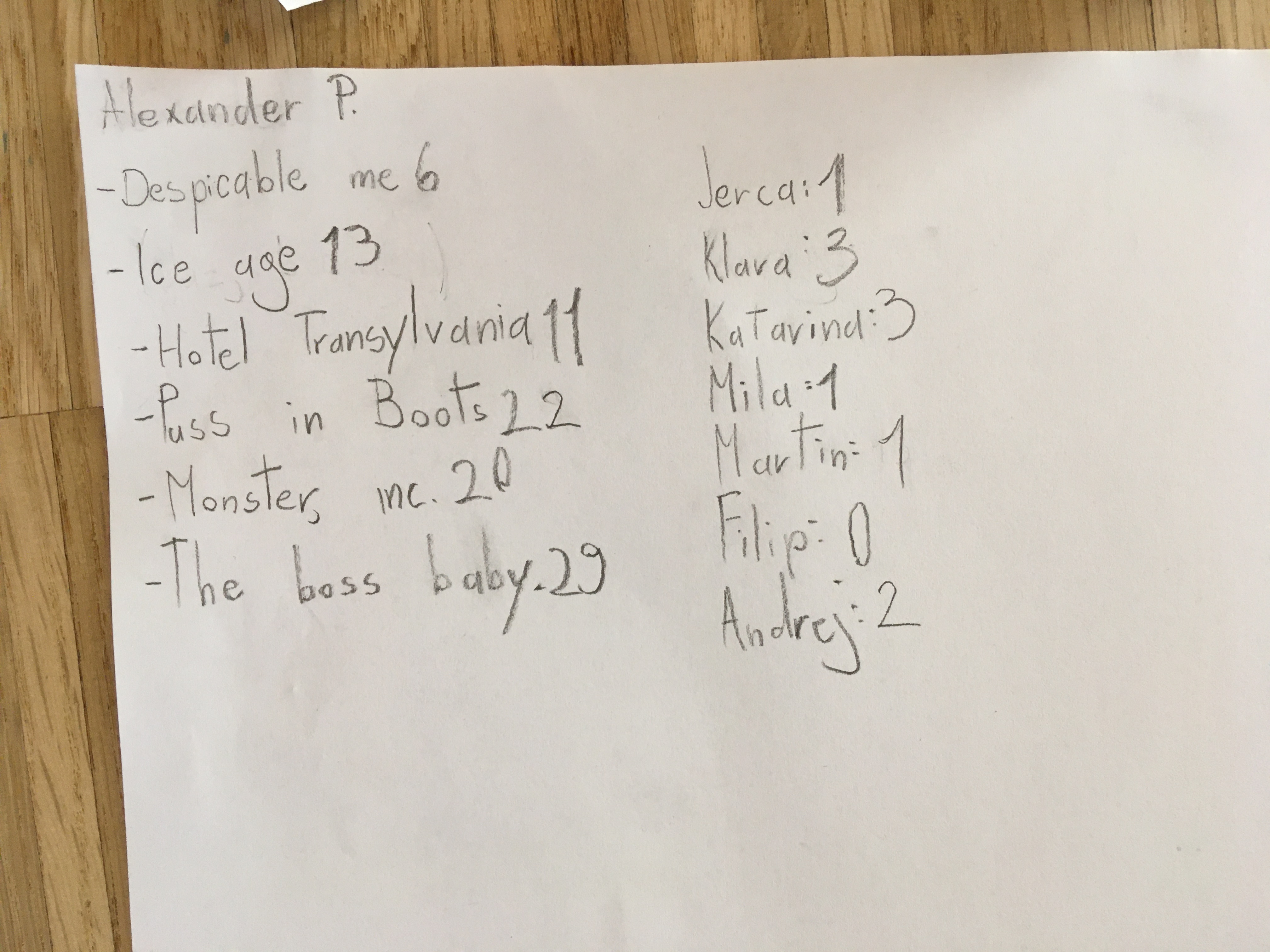 Vsak učenec izbere 7 risank, ki so mu najbolj všeč. Na levo stran lista napiše njihove številke in imena. (Isto risanko lahko izbere poljubno število otrok. V razredu se je zgodilo, recimo, da so v neki skupini “punce pobrale vse ta najboljše risanke” in jih fantje zato niso mogli izbrati. :)