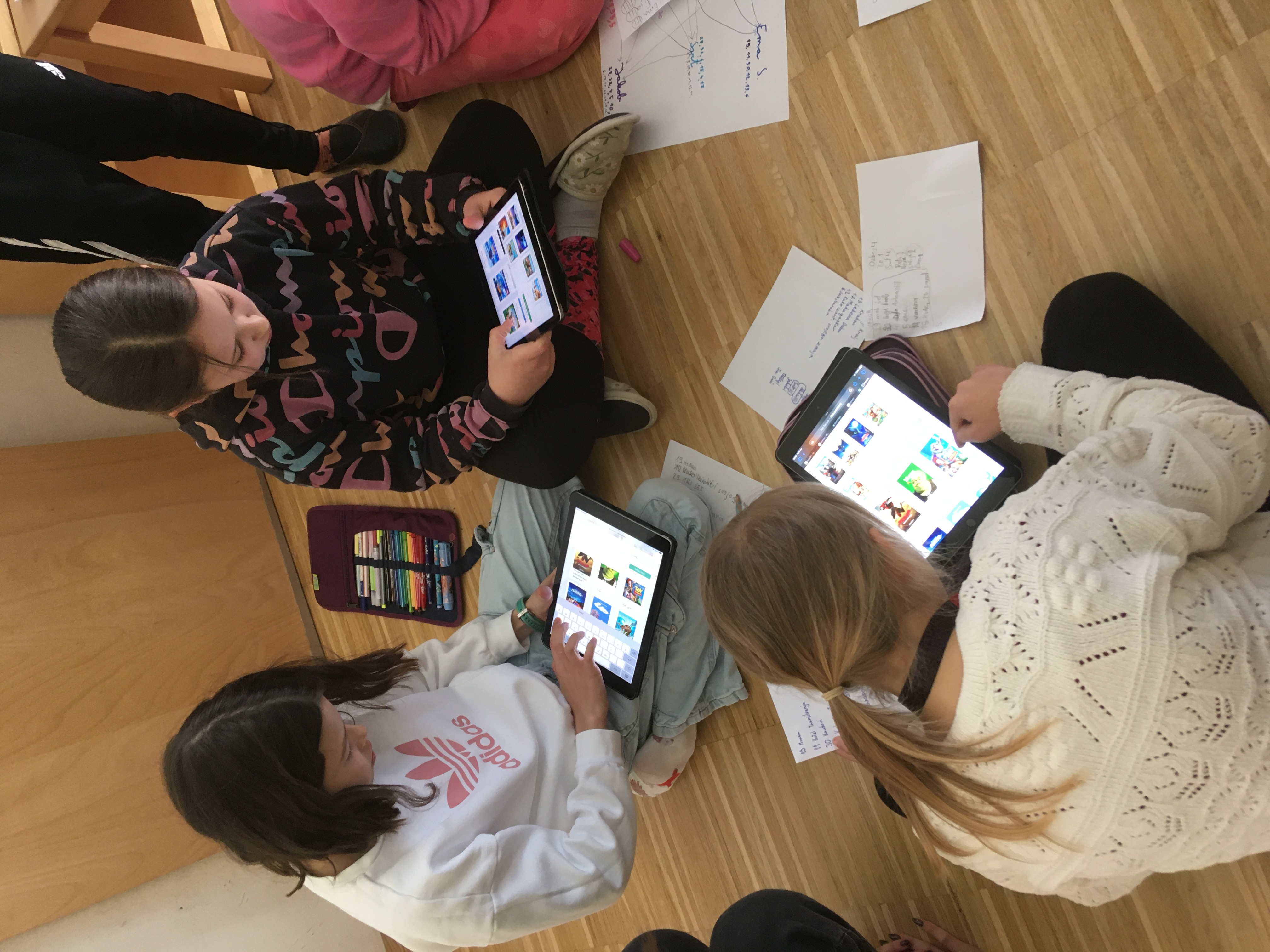 Ko so učenci dovolj daleč z delom (recimo med risanjem na papir A3), skupinam razdelimo tablice, v katere smo vnesli povezavo do obrazca. Vsak učenec poišče in izbere svoje risanke.